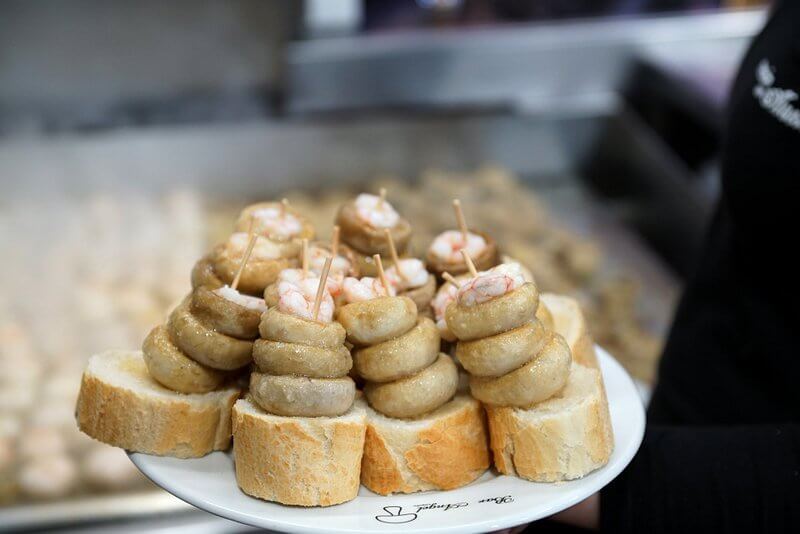 Se trata de una montaña de tres champiñones coronada con una gamba al ajillo y bañado en salsa sobre una rebanada de pan. Parece sencillo, pero la realidad es que estos bares tienen secretos guardados para que el pincho tenga un sabor único y te haga repetir. La receta de este entrante la puedes reproducir en casa para cualquier comida o cena y sorprender a tus comensales por la simplicidad y el sabor de esta tapa.