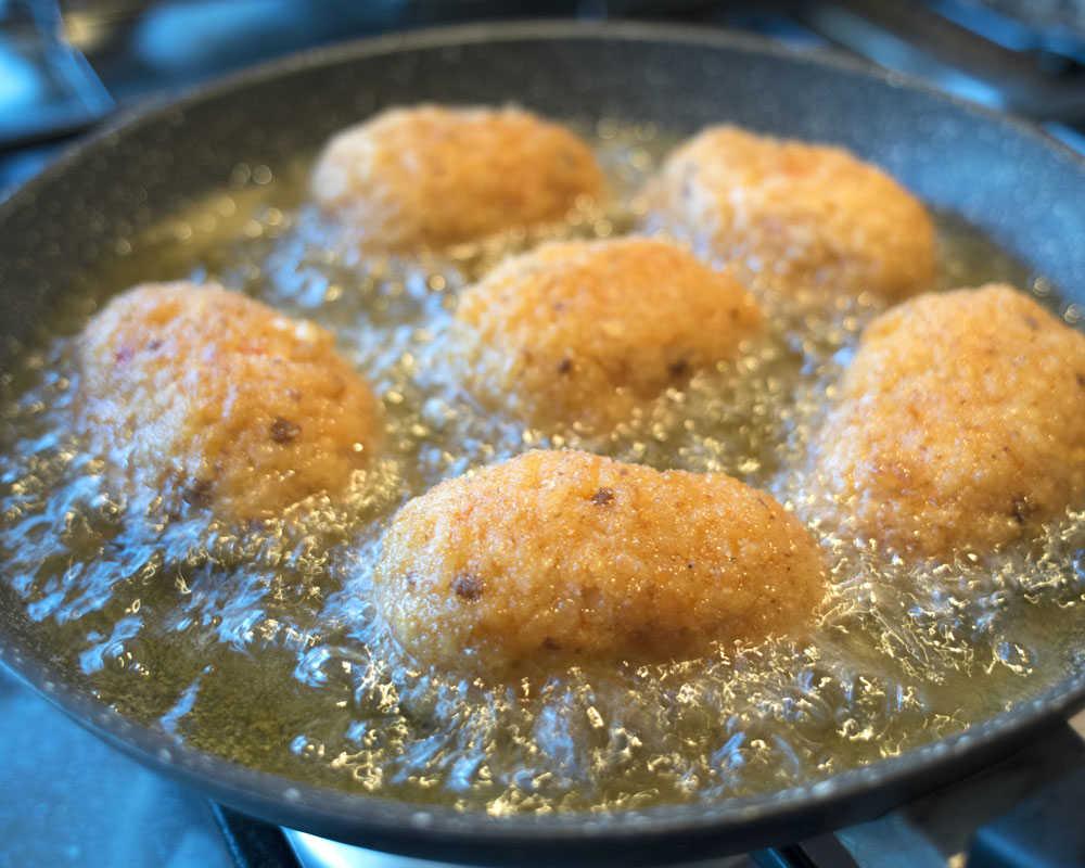 Un error muy habitual es echar muchas croquetas a la vez en la sartén o en la freidora, lo que hace que se peguen y golpeen unas con otras y se acaben deformando. Es preferible echarlas en varias tandas de menor en menor número.