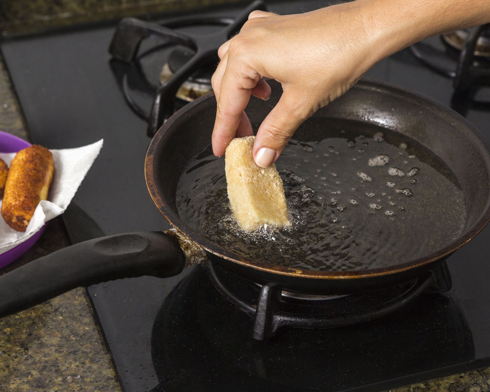 Debemos utilizar aceite de oliva virgen extra y debe ser un aceite limpio para que se puedan freír las croquetas correctamente.
