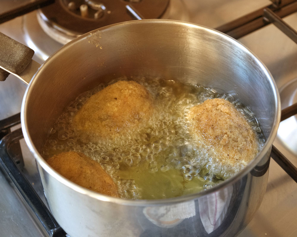 Uno de los problemas más frecuentes al freír las croquetas es que estas se abran o “exploten”. Las croquetas no deben estar muy frías cuando las pongamos en el aceite y el aceite debe estar caliente, pero sin humear. Las croquetas deben quedar totalmente cubiertas por el aceite.