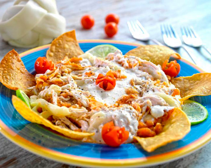 Estos chilaquiles de pollo son un plato tradicional mexicano, perfecto para compartir y picotear. Anímate y prepáralo en la próxima reunión de amigos; os va a encantar.