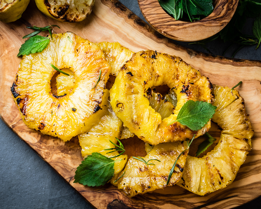 Platos como el salmón o un costillar de cerdo al horno quedarán estupendos acompañados con piña.