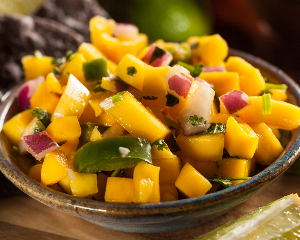 También puedes preparar una salsa de mango, perfecta para acompañar carnes.