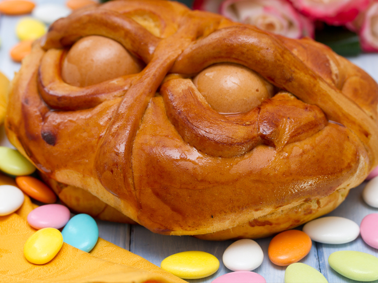 Es una pieza de bollería típica sobre todo en Cataluña, Comunidad Valenciana, Murcia, Castilla-La Mancha y otras regiones de España. La tradición es comerlo en Pascua, como muestra del final del ayuno de la Cuaresma. Tradicionalmente incorporaba un huevo duro, que ahora en ocasiones se sustituye por uno de chocolate para hacerla más atractiva al público infantil.