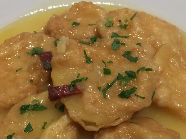 Un plato que demuestra que no siempre hacen falta muchos ingredientes ni muy caros para preparar un plato delicioso. Básicamente es un guiso que consta de patatas rebozadas en salsa, que suele hacerse con caldo de carne. Es típico de la zona de Castilla y es muy fácil de preparar y súper económico.