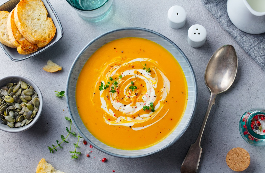 Una crema de boniato y zanahoria es una opción de lo más reconfortante en los días de más frío. Puedes decorarla con picatostes, pipas o trocitos de queso.