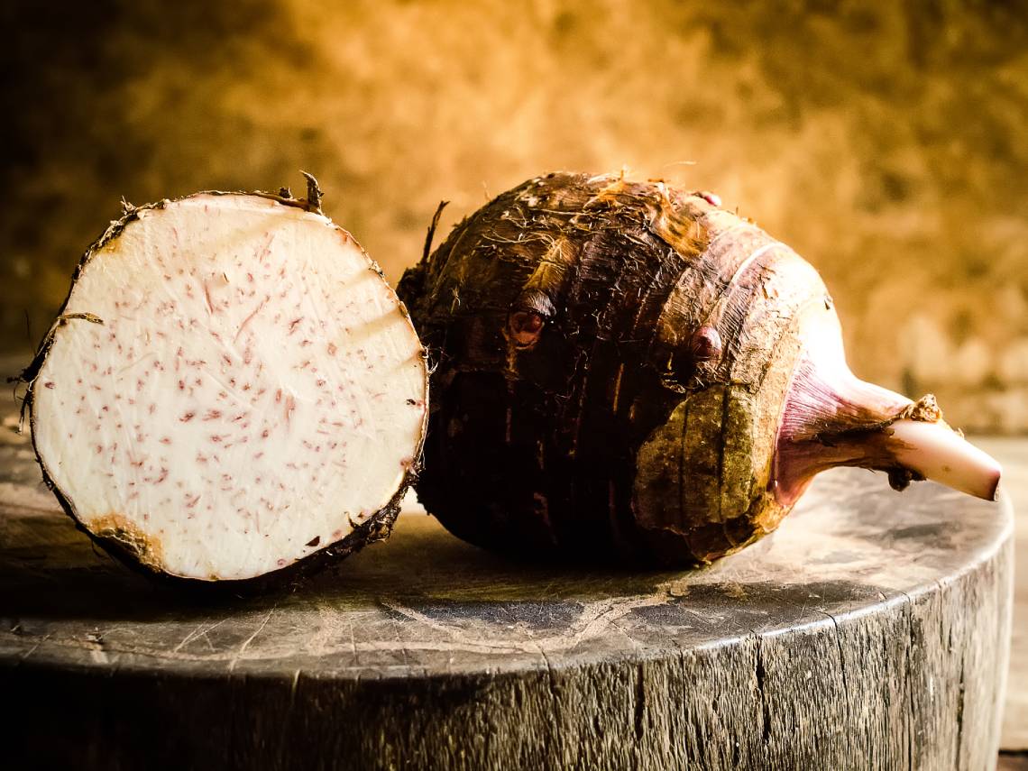 La raíz de taro (también conocida como malanga) se consume especialmente en Francia. Sin embargo, cada vez es más popular en todo el mundo debido a su característico color morado. Con esta raíz se suelen elaborar smoothies y todo tipo de bebidas naturales. Sus propiedades nutricionales no son pocas, pues es ideal para mantener estable la presión arterial, aliviar el estrés y combatir el estreñimiento debido a su alto aporte de fibra (el 27% de la cantidad diaria recomendada). También es una buena fuente de potasio, vitamina C y antioxidantes. Se puede consumir como alternativa a la patata, eso sí, lavándolo bien antes, pues puede contener tóxicos.
