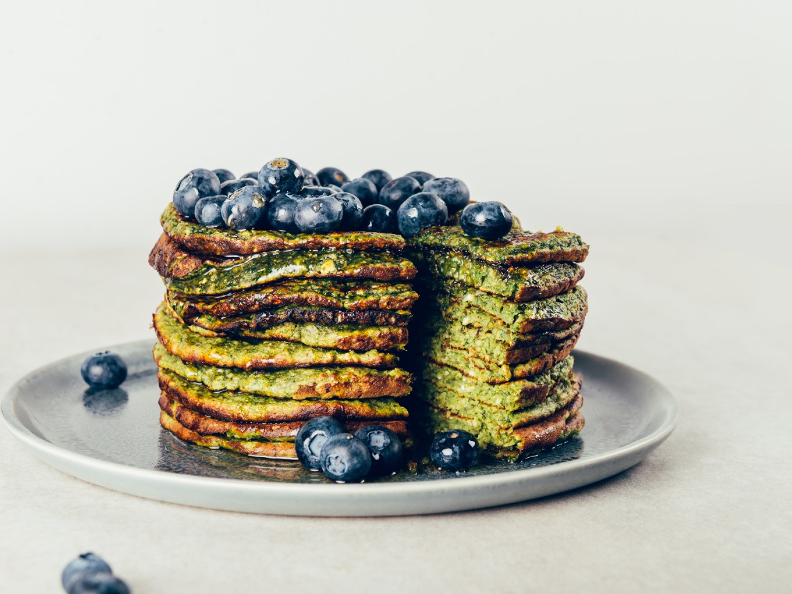 Esta receta de tortitas veganas te va a encantar. Se preparan con espinacas, leche de coco y avena. A modo de 'topping', puedes añadir las frutas que quieras, aunque están especialmente ricas con arándanos. Pruébalas si quieres un desayuno nutritivo para empezar el día con las pilas cargadas.