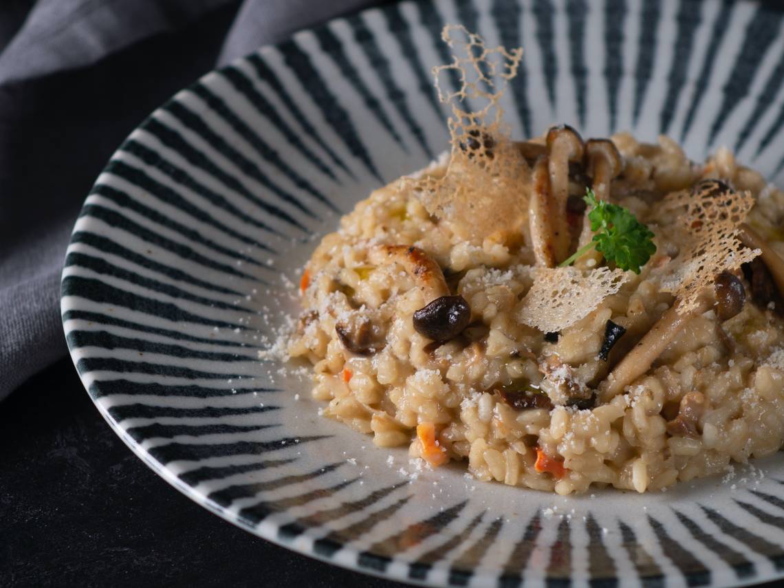 En los arroces en general un poco de trufa laminada nunca viene mal pero de igual forma que con la mantequilla la trufa funciona a las mil maravillas lo hace también con un queso como el parmesano, sin necesidad de que este sea especialmente curado. Si vais a usar trufa en el arroz huid de ingredientes muy potentes y de añadir muchísimos sabores distintos; menos es más.