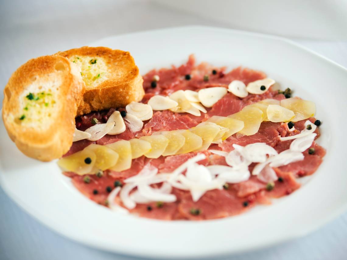 Un carpaccio de ternera es también muy fácil para compartir entre amigos y familiares. La clave está en que esté cortada muy finamente para que sea más gustoso en boca, además de un buen aliño de aceite de oliva virgen extra, sal, pimienta y queso parmesano.