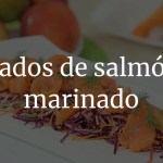 Calentar una plancha, untarla con 2 cucharadas de aceite y dorar los dados de salmón por todos los lados