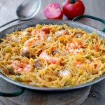 Agregar las gambas y meter en el horno, precalentado a 200 ºC, durante 5 minutos más
