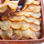 Cubrimos con otra capa de patatas y cebollas; alternamos sucesivamente, hasta terminar con una capa de patatas
