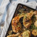 Disponer el pollo encima de la cama de verduras e introducir la bandeja en el horno