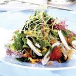 Repartir la ensalada en los platos, rociar con la vinagreta y servir