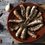 Cuando el aceite empiece a freír las sardinas, añade un chorro de vinagre y los ajos fritos de antes y retira la sartén del fuego