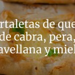 Colocar en la base de la tartaleta el queso de cabra desmenuzado, las láminas de peras y unos trozos de avellana