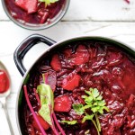 Si lo deseas, licua ligeramente la sopa en esta etapa con una batidora de mano, obtendrás un color morado más intenso si lo haces