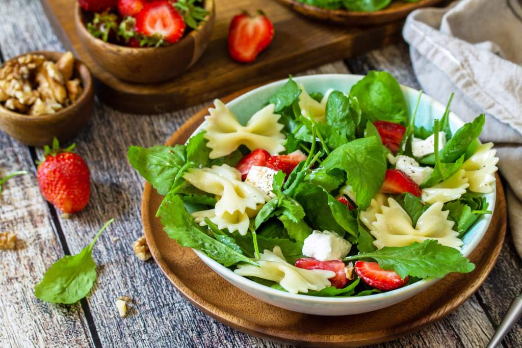 Las fresas aportan a una ensalada de pasta de lacitos, por ejemplo, un toque entre dulce y ácido que resulta espectacular. Hay muchas opciones para acompañar a la pasta y las fresas en una ensalada. A continuación te explicamos algunas.