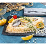 Además de ser un plato delicioso, la dorada a la sal es una manera muy saludable de comer el pescado, ya que se cuece únicamente con la sal y sus propios jugos. No es raro que sea uno de nuestros pescados favoritos, es económico, tiene muy pocas calorías, y el sabor de su carne hacen que sea una de las especies más valoradas por los consumidores. La receta de dorada que proponemos es facilísima de preparar y lo único que necesitarás serán unas doradas de buen tamaño, y unos cuantos kilos de sal marina gruesa. No tendrás ninguna complicación a la hora de preparar el pescado, ya que lo único que tendrás que decirle a tu pescadero será que elimine los interiores de las doradas (puedes cocinarlas incluso con las escamas). Además como se hace al horno, lo único que tendrás que hacer es precalentarlo, introducir la bandeja con las doradas bien cubiertas de sal, y programar el horno el tiempo necesario para que queden en su punto. Ahorrarás tiempo en la cocina, así que podrás dedicarte a otras tareas mientras que la comida está lista. La guarnición con la que quieras acompañar la dorada ya es cuestión de gustos, pero lo que nunca falla es una buena ensalada de tomates aliñados y unas judías verdes cocidas al vapor y rociadas con un hilo de aceite de oliva con ajo justo antes de servirlas.