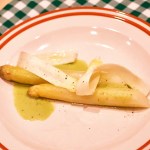 Queriendo dar más protagonismo al espárrago blanco, este es el producto principal, siendo el triguero, en forma de salsa y la haba de tonka, en forma de matiz o sazón.