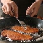 Para esta receta vas a necesitar cuatro filetes de ternera de 125 gr cada uno, harina, dos huevos, aceite de oliva, 250 ml de vino blanco seco, tres cucharadas de alcaparras escurridas, 125 gr de mantequilla, 2 cucharadas de zumo de limón, alcachofas cocidas y sal. El primer paso de todos es aplastar la carne con un rodillo hasta que su grosos sea de 3 mm. Corta los filetes en trozos y enharínalos. Mezcla los huevos con dos cucharadas de agua y pasa la ternera. Mientras calienta el aceite en una sartén.