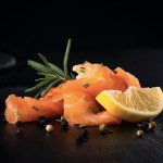 Encima del queso y de la ralladura de limón, la chef sirve porciones pequeñas de salmón, que puede ser fresco o ahumado. El efecto no varía, pero sí el sabor de la mezcla. Oria coloca el salmón en filas alternativas, pero puedes llenar todos los pétalos si lo prefieres