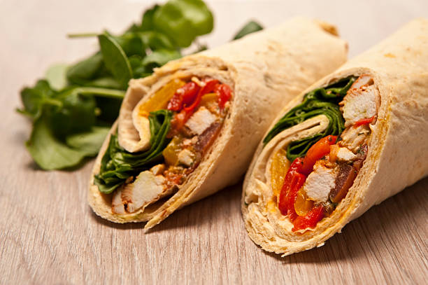 Opta por wraps integrales rellenos de pechuga de pollo a la parrilla y una variedad de vegetales frescos. Añade aguacate, zanahorias ralladas, lechuga y espinacas. Este plato es versátil y puedes personalizarlo según tus gustos, además de ser una excelente opción para llevar.