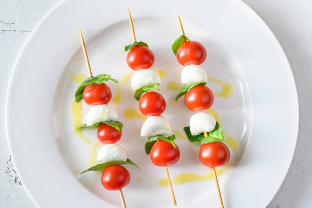 Una opción fresca y sofisticada que combina tomates cherry, bolas de mozzarella y hojas de albahaca. Adereza las brochetas con una reducción de balsámico para un toque de exquisitez. Estas coloridas y deliciosas brochetas son perfectas para aquellos que buscan una alternativa ligera pero llena de sabor.