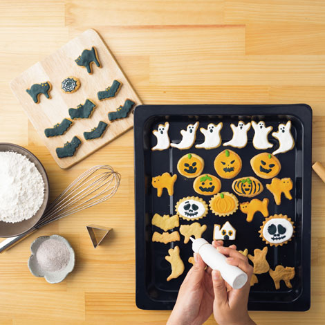 Haz galletas de mantequilla con formas de miedo: fantasmas, murciélagos, calabazas… Y decóralas con glasa teñida de colores.