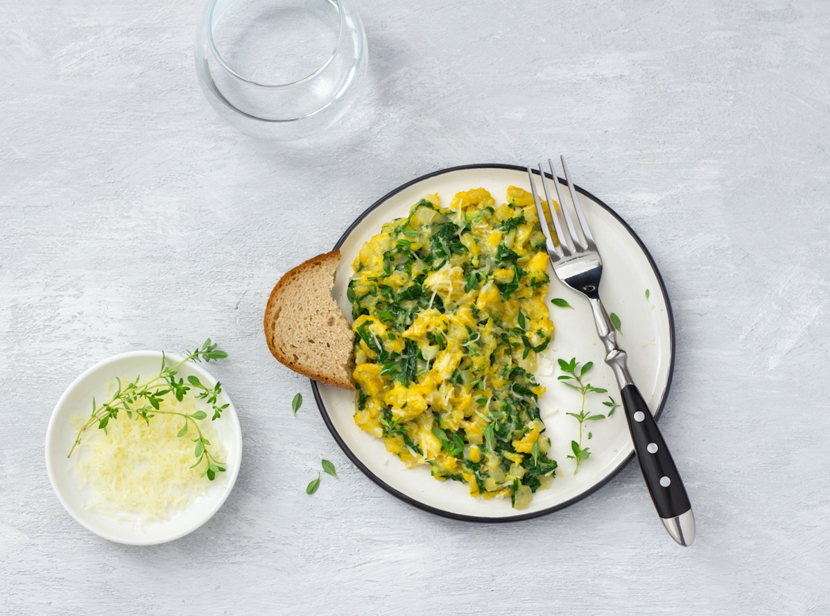 Para preparar esta delicia prepara una tortilla francesa batiendo un par de huevos. Cuando esté casi lista en la sartén, añade el kale y unos trocitos de queso curado en lonchas. Remuévela y deja que se cocine un poco más al fuego, y listo. ¡Te encantará!