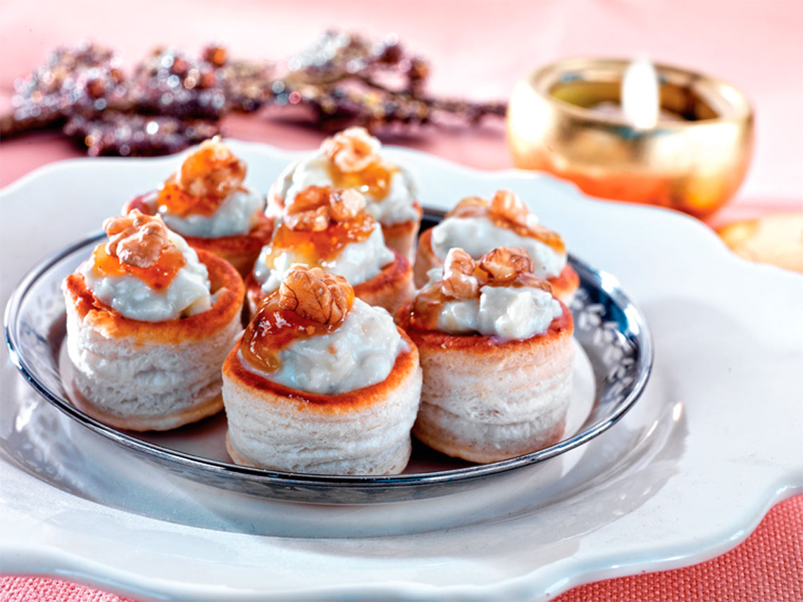 Los minivolovanes de roquefort con confitura de higos son perfectos para comenzar una comida o cena de fiesta. Una combinación de sabores que los amantes del queso más potente disfrutan muchísimo.