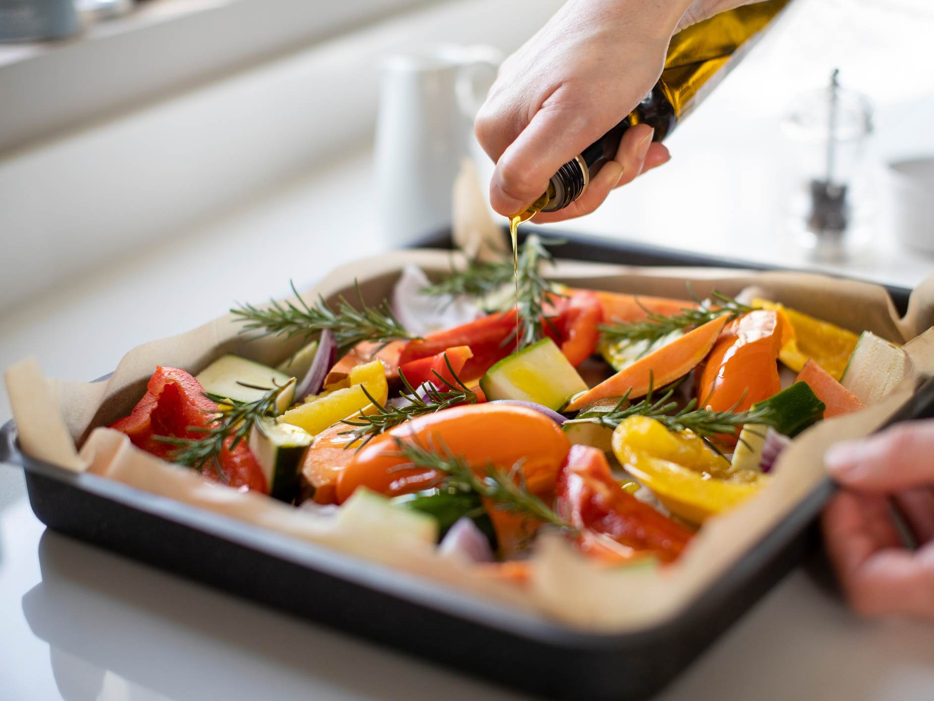 Puedes aprovechar cuando enciendas el horno para asar verduras u hortalizas que luego serán claves en ensaladas originales y ricas. Dos de nuestras favoritas son la calabaza y los pimientos rojos, que además tienen la ventaja de que también son un acompañamiento perfecto de platos sencillos como unos simples filetes de pollo a la plancha o un pescado al vapor. No olvides asar los pimientos enteros, hasta que la piel se quede muy tostada.