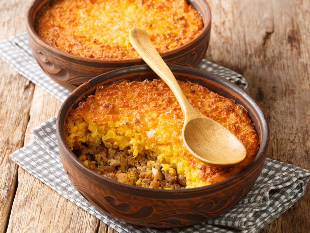 Posee un relleno parecido al chile de pavo molido (aunque en realidad la carne puede ser sustituida por la opción que más te guste), maíz, frijoles, tomates y especias; luego, la mezcla es recubierta con queso y con una cobertura de masa esponjosa, similar al pan de maíz, y se introduce en el horno.