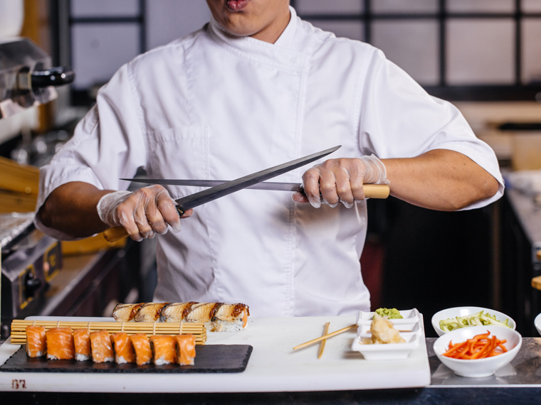 El cuchillo para sushi, también conocido como hocho, es una de las herramientas más cuidadas por los maestros de la cocina asiática. Un cuchillo de calidad garantiza que el sushi sea agradable en boca, tanto por su textura como por la capacidad que tienen de no alterar el sabor del pescado. Tienen una peculiaridad que los diferencia de los cuchillos que conocemos y usamos en Occidente: tienen solo un filo.