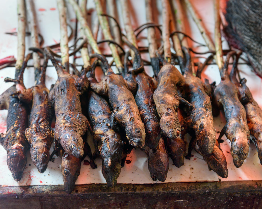 Los roedores tampoco escapan a las tradiciones culinarias de algunos países, como es el caso de China, Tailandia o Vietnam, donde es frecuente encontrar en mercados ratas asadas o fritas. Camboya se ha convertido en un gran exportador de carne de rata y defiende que el sabor de estos roedores puede ser similar al del cerdo.