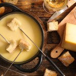 El mejor sabor se consigue mezclando dos tipos de queso y puedes experimentar con diferentes combinaciones. Los quesos básicos para la fondue son los quesos suizos: Gruyere, Emmental, Vacherin, Appenzeller, aunque también funciona bien el Cheddar, el Gouda o el Comté e, incluso, algún queso azul si quieres darle un toque diferente