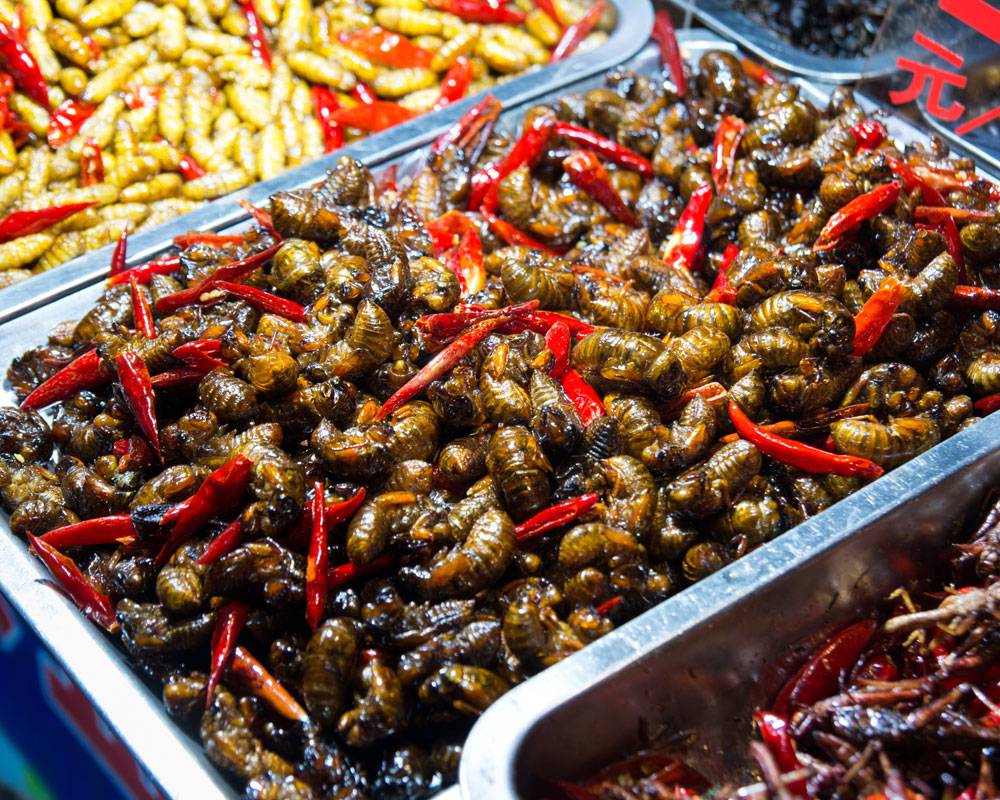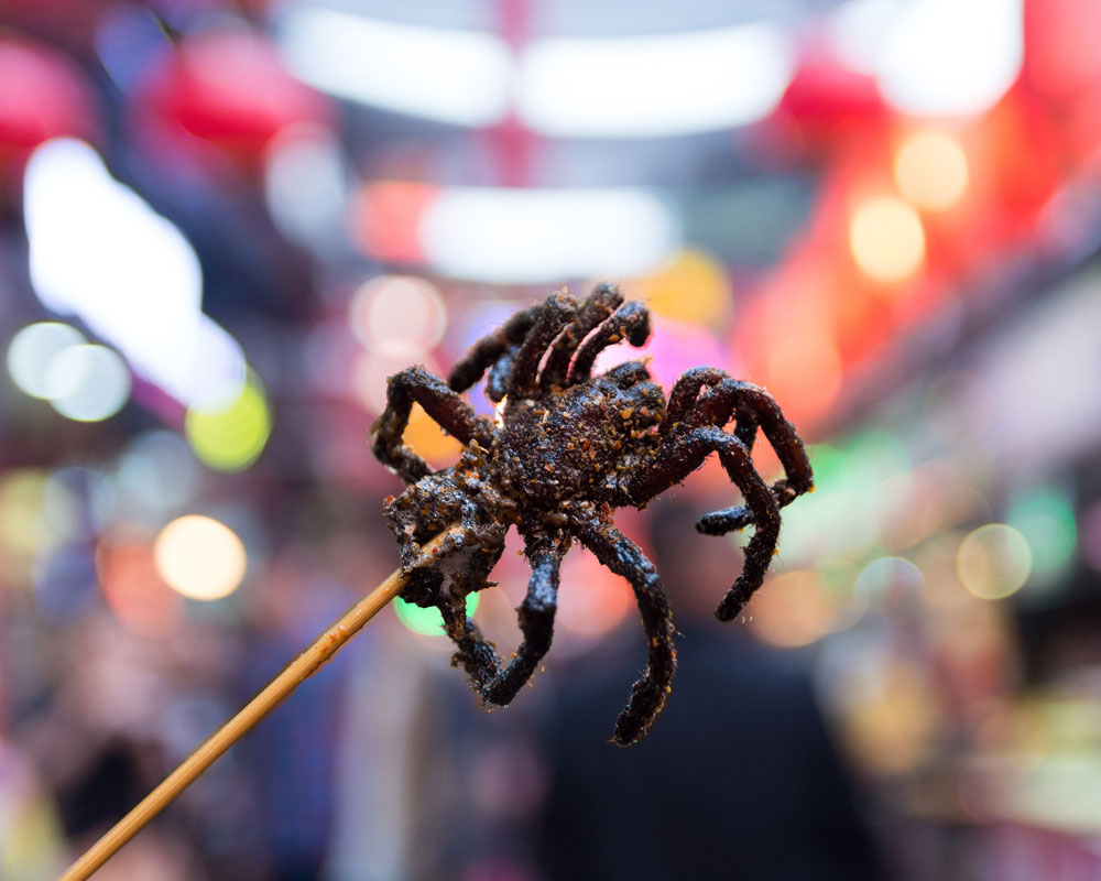Comer insectos es algo muy popular en Asia. Los escorpiones fritos y presentados en forma de brocheta suponen uno de los platos más populares del mercado nocturno de Wangfujing, en Pekín.