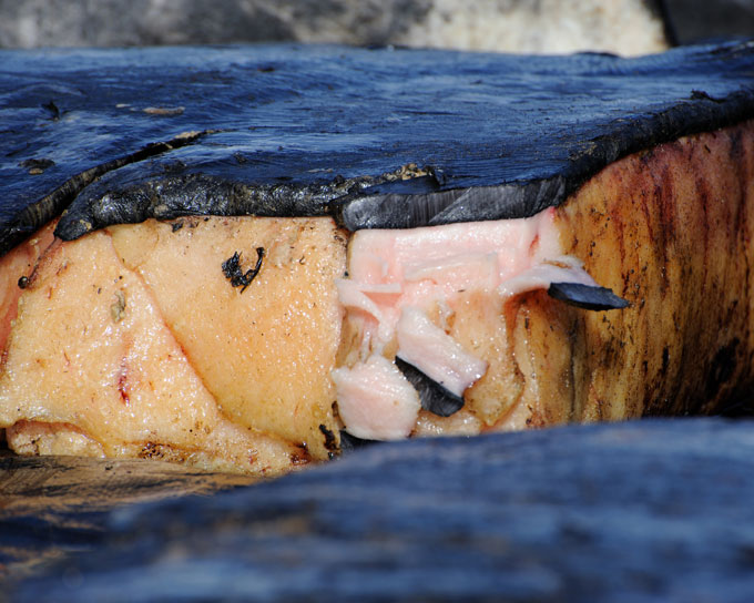 Un plato procedente de Groenlandia. No es más que grasa y piel de ballena boreal que se consume cruda, aunque también se puede freír. Este manjar aceitoso y con textura a goma está repleto de vitaminas C y D.