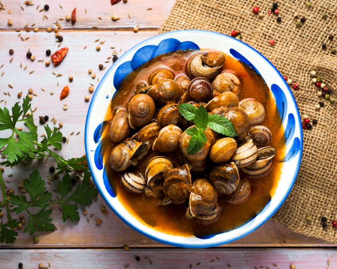 A muchos les puede sonar exótico, pero los caracoles cocinados son un plato muy habitual en nuestro país. Aunque en algunos puntos de Latinoamérica también son típicos, puedes comerlos un muchos restaurantes de la capital española.