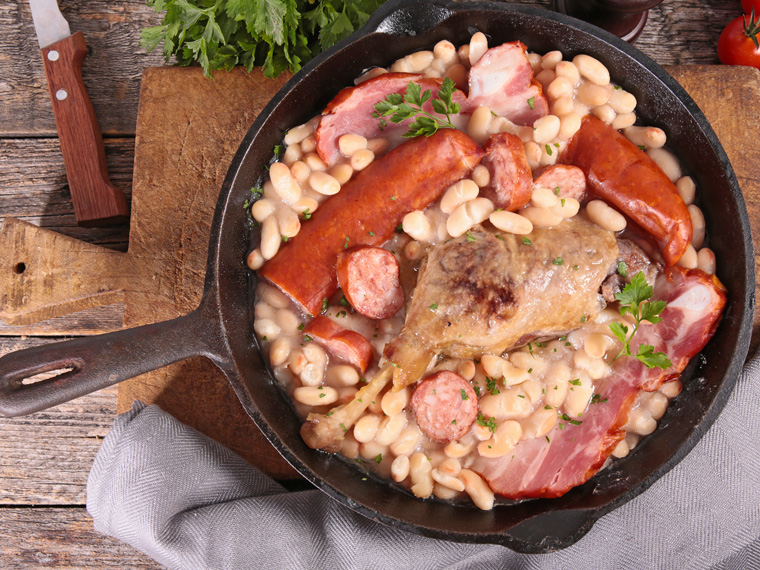 Originario de Laguedoc-Roussillon, está compuesto de alubias blancas, muslos de pato y carne de cerdo (bajo diferentes formas). Las familias de campesinos lo han consumido durante siglos. Hoy, los franceses lo cocinan para celebrar reuniones familiares.