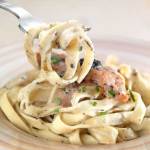 Bañar los tagliatelle con la salsa de nata y trufa, mezclar y calentar a fuego muy suave