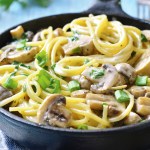 Al mismo tiempo añadir la nata a los champiñones y cocinar a fuego lento durante 3 minutos