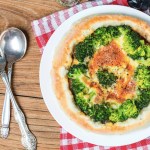 Espolvorea la pizza con provolone y mozzarella y por último, coloca el brócoli encima