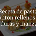 Estira las láminas de wonton y, con la ayuda de una cuchara, pon un montoncito del salteado de verduras en el centro