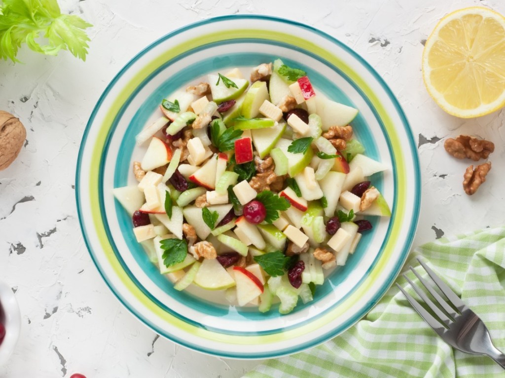 El apio es un componente clave en la clásica ensalada Waldorf, ya que le da un toque muy fresco. Esta ensalada consiste en manzanas ácidas troceadas, frutos secos, apio y mayonesa o algún aliño basado en esta salsa. Rápida, sencilla y muy original.
