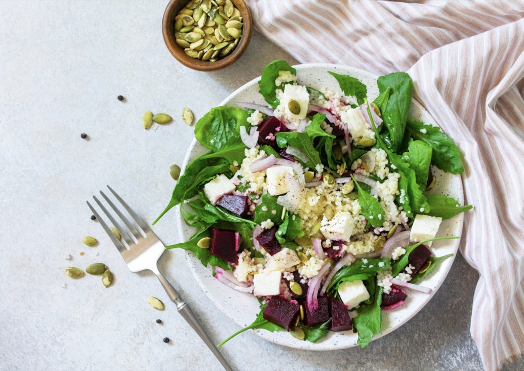 Como ingrediente principal, la socialité ha escogido una base de canónigos y rúcula. Es una de las mezclas más fáciles de encontrar ya listos en el supermercado. Si no te gusta esta mezcla, puedes elegir cualquier tipo de base de ensalada.Sobre esta cama vegetal, la cordobesa lámina una remolacha cocida, con su característico color morado intenso. Podéis hacerla en casa o comprarla ya preparada, que también es relativamente fácil de encontrar.