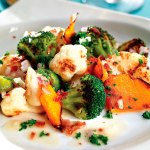 Ingrediente vegetal de invierno donde los haya (presente en la mayoría de mesas navideñas), la combina con otras verduras como brócoli (opcional), queso al gusto, copos de chile, una fruta como la pera o manzana y unas pasas o dátiles.