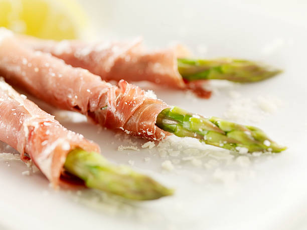 5. Espárragos Envueltos en Jamón Ibérico con Crema de Trufa