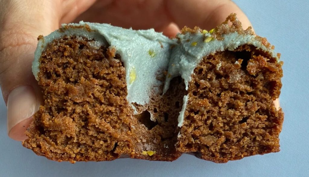 - Calabaza y moringa: Inspirado en los clásicos donuts sin agujero, esta opción es jugosa y deliciosa, con notas de cacao y té matcha que se entrelazan en su interior.